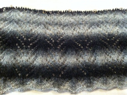 I pretty clearly goofed when switching between balls of yarn, but I’ve decided I can live with it. This is a huge step for me. Normally, I would rip it all out and start over again. I think the regularly delivery of pattern pieces keeps me from succumbing to my normal level of nit-pickiness.